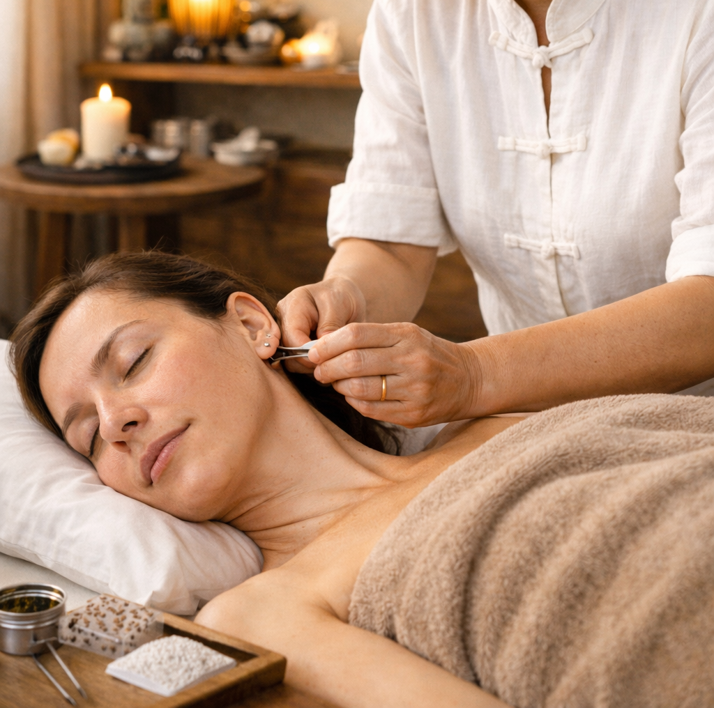 Elle consiste en la stimulation des points d’acupuncture sur divers endroits de l’oreille.